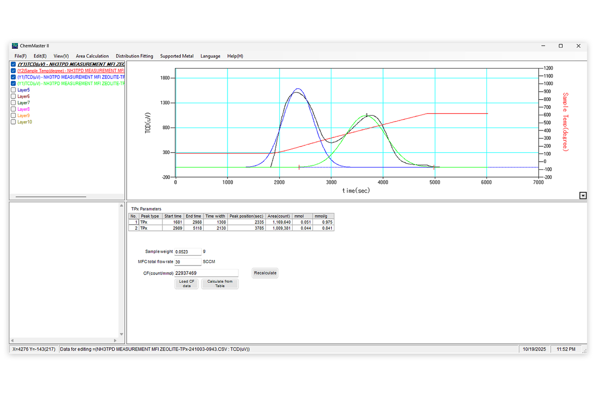 | Sequential measurement mode | Sequential measurement mode automates catalyst characterization by performing a series of independent measurements in a defined order, allowing for systematic analysis without user intervention. | Highly reliable automatic multi-point calibration | Automatic multi-point calibration is performed after TPD or TPR measurements by using the instrument’s MFCs to generate various gas concentrations. |
